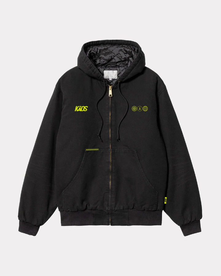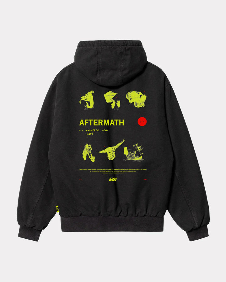 Una prenda oversize de lona gruesa con hombros caídos y cremallera para una silueta relajada y un forro suave. Diseñada con capucha de doble capa, bolsillo tipo canguro dividido y un sutil logo a tono. Ideal para combinar con otras prendas o para looks monocromáticos. Su largo ligeramente corto es perfecto para un conjunto moderno y versátil. Gráficos con múltiples impactos, etiqueta con la bandera de la marca, bordado personalizado con puntada X en el bolsillo y lavado a la piedra.