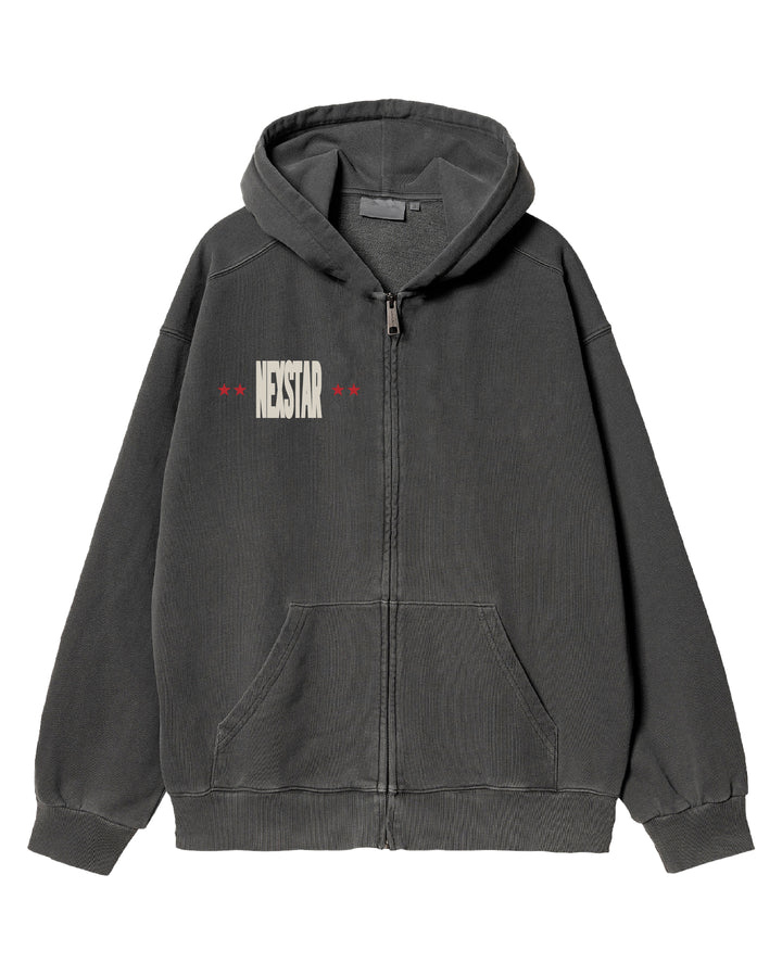 Our Grey Zip Up Hoodie was developed to have a slightly oversized fit.